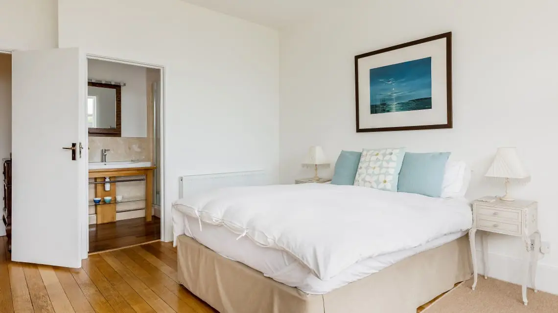 Bedroom 1 (Master): A spacious, elegantly styled King-size bedroom featuring a private en-suite shower room.