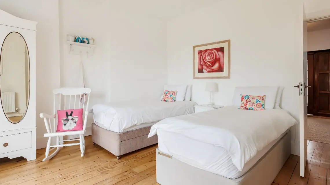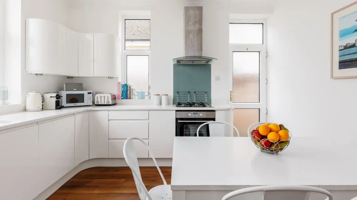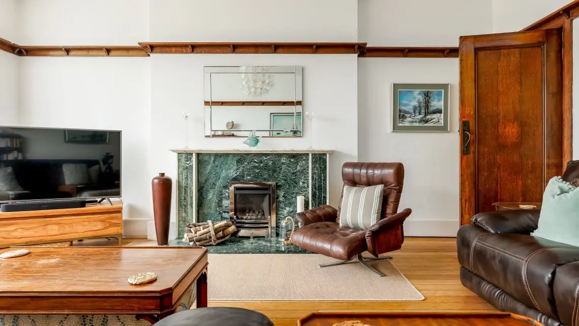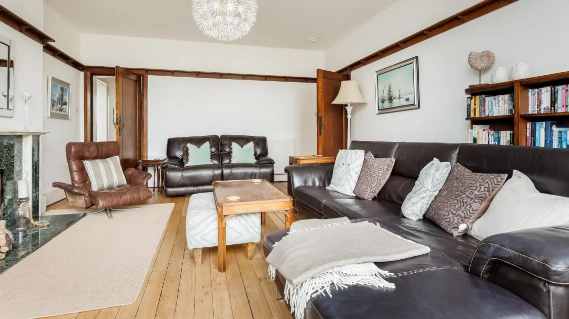 Welcome to Cliff Tops, a truly wonderful and character-filled holiday apartment occupying a highly sought-after elevated position overlooking the sea. Spanning the entire ground floor of a gorgeous period house dating back to the 1920s, this property oozes historic charm with its high ceilings, original wood paneling, ornate coving, and a beautiful original fireplace. The current owners have lovingly updated the space, blending classic elegance with contemporary luxury to create a bright, spacious coastal retreat.