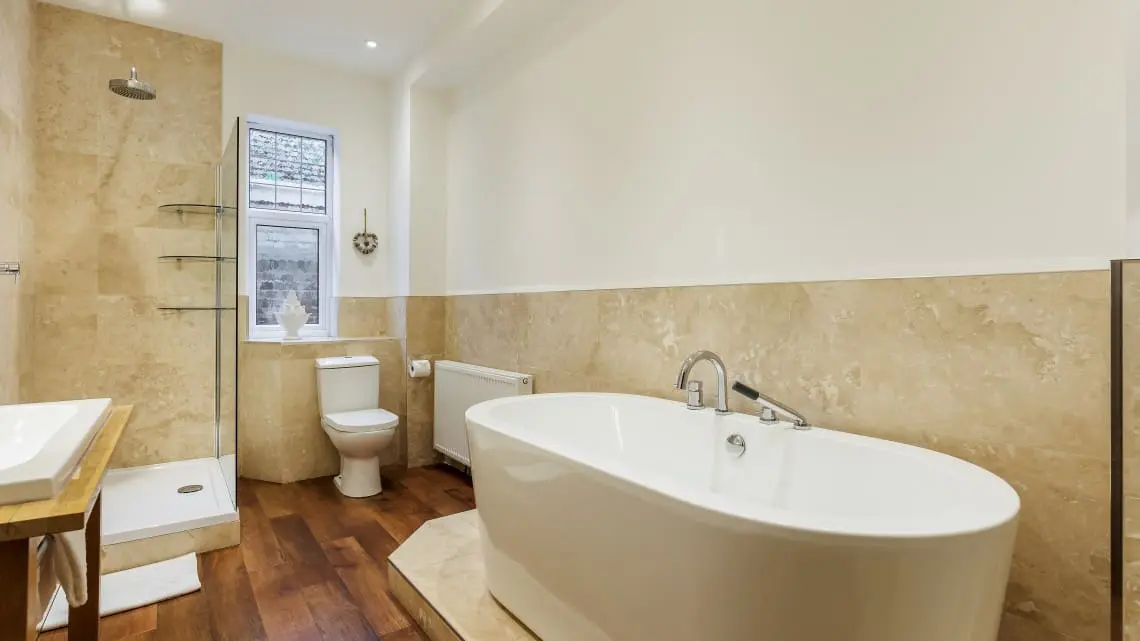 Family Bathroom: A luxurious, high-end family bathroom complete with a spectacular freestanding feature bath.
