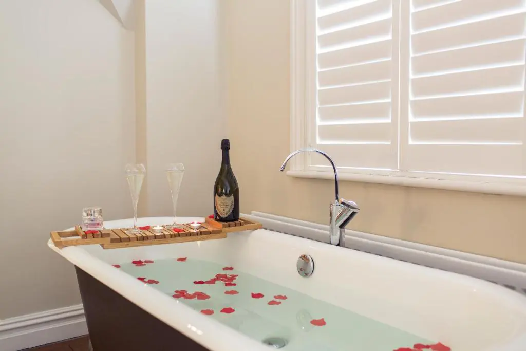 The bedrooms are deeply relaxing sanctuaries. They feature natural wool carpets, wallpaper printed with vegetable inks, and incredibly plush beds made from sustainable timber. The stunning en-suite bathrooms feature walk-in monsoon showers or deep Victorian roll-top baths, ensuring your eco-retreat feels incredibly indulgent.
