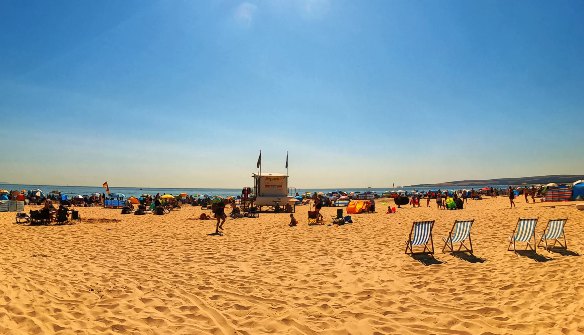Sandbanks Beach is famously family-friendly. The sand gently slopes into the English Channel, meaning there are no sudden, steep drop-offs in the water. During the main summer season (May to September), the beach is heavily patrolled by fully trained RNLI Lifeguards.