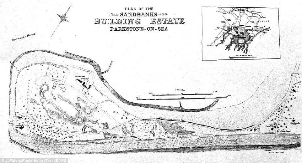 When winter storms threatened to wash the peninsula away entirely, the local landowner, Lord Wimborne, refused to pay for sea defences. The Poole Harbour Commissioners stepped in, building a sea wall to save the harbour channel. To recoup the costs, they auctioned off 40 plots of Sandbanks land at the Antelope Hotel in Poole. The starting price? Just £125 per plot.