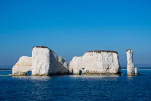 Marking the easternmost point of the spectacular Jurassic Coast, Old Harry Rocks are iconic white chalk sea stacks rising dramatically from the ocean. Accessible via a highly scenic coastal walk from Studland village, these brilliant white cliffs offer breathtaking views stretching back to Sandbanks, Bournemouth, and across to the Isle of Wight.
