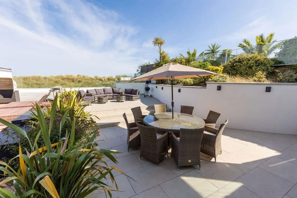 Large ground floor apartment with direct access on to the fabulous blue flag Sandbanks beach. Private terrace, games room, four bedrooms and three bathrooms to sleep 8 in comfort.