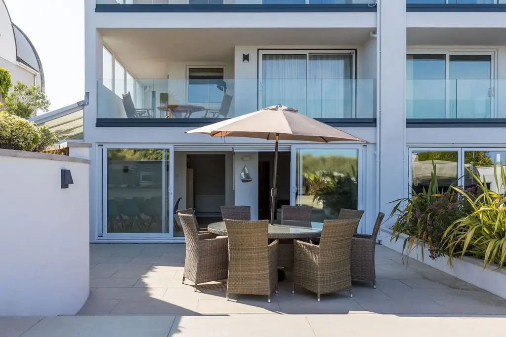 This generous ground floor apartment offers unbeatable access to the award-winning Blue Flag beach at Sandbanks — just step straight onto the sand from your private terrace. With ample outdoor seating and a communal beachside shower, it’s the ideal spot for seaside living.