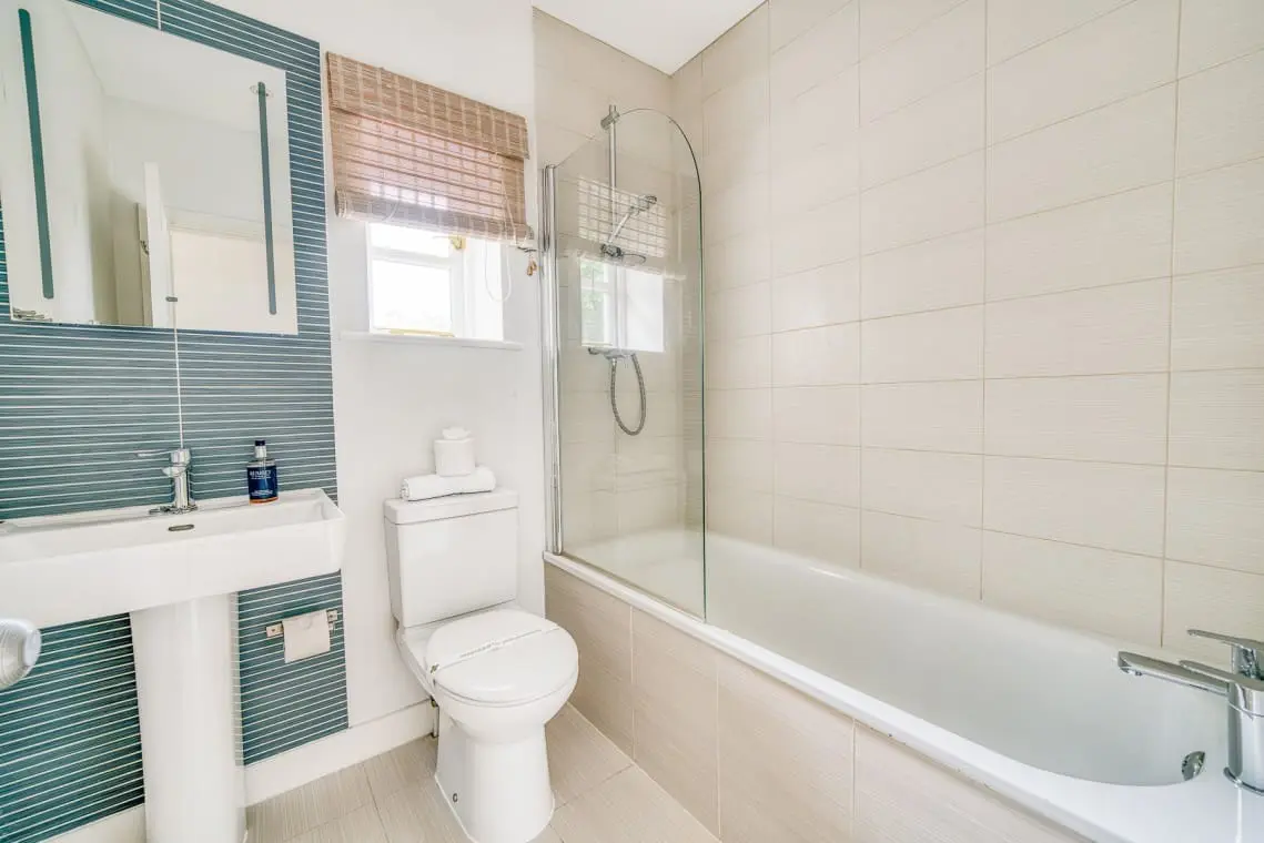 Family Bathroom – with bath and shower over, basin and W/C