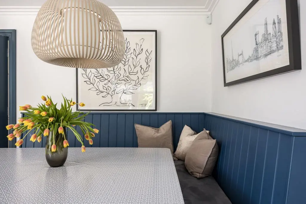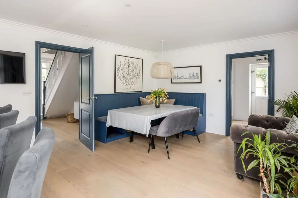 The dining area – also overlooks the garden to the rear and seats up to 10 guests. The perfect spot for social gatherings.