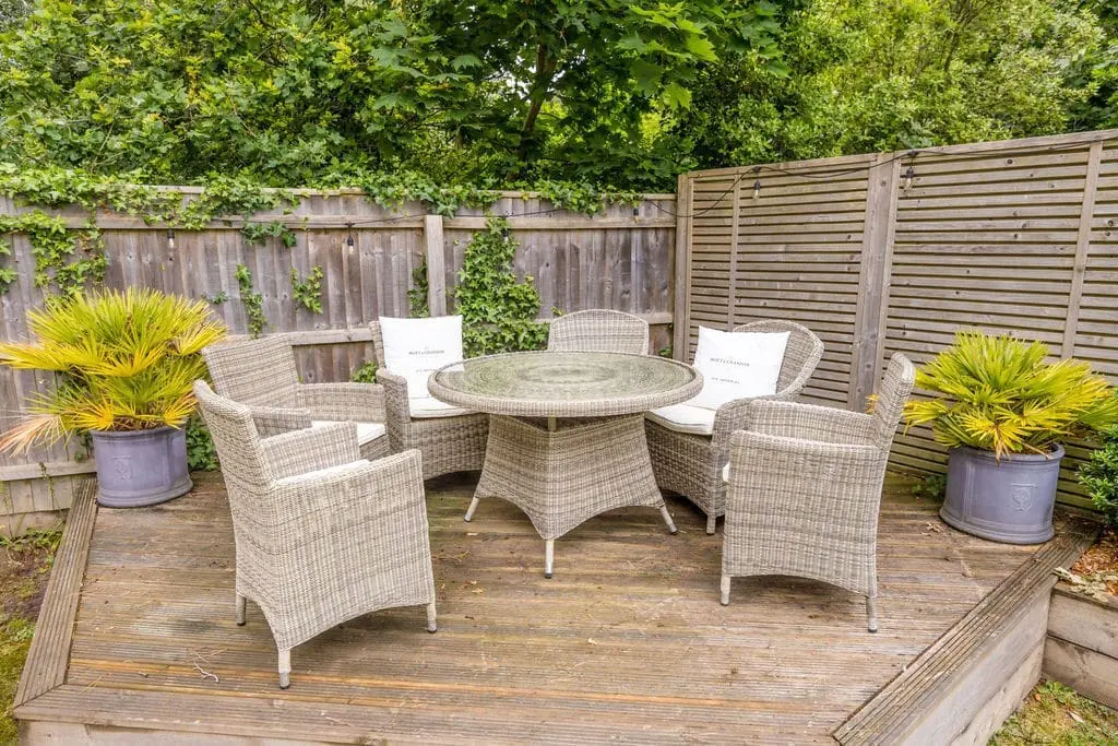 The bi-folding doors enable guests to make the most of the outdoor space, including the private tranquil garden area and enticing covered hot tub. There is also an outdoor dining table and chairs and a BBQ.
