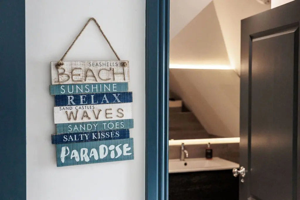 With four generously sized bedrooms and three elegant bathrooms, this spacious home comfortably hosts families or groups. The highlight is the luxurious master suite, complete with a super king bed, dressing area, and a stunning en-suite shower room. The open-plan kitchen and dining space is ideal for relaxed breakfasts and family meals, while the separate sitting room and cinema room provide cosy corners to unwind after a day by the sea.