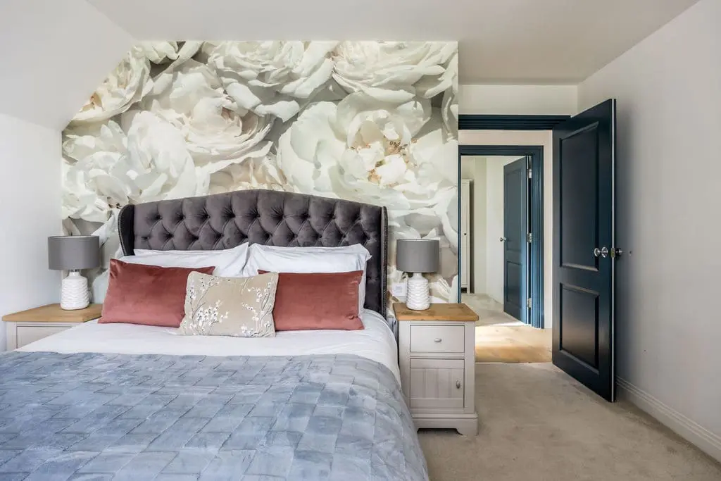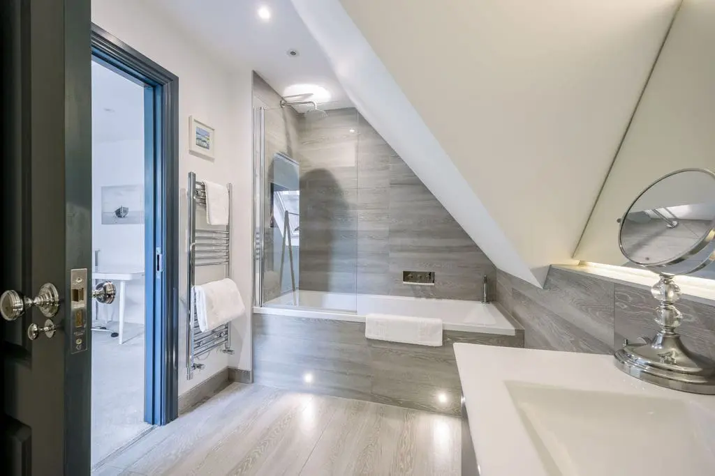 Master super king bedroom with en suite – overlooking the front of the house the master-bedroom suite is a thing of absolute beauty and would not look out of place in a high-end boutique hotel, with super king-size bed, luxe decor and a walk-in wardrobe/dressing room that is a haven in itself – complete with desk and seating area. The en suite has a very luxurious feel with a large walk-in shower and twin basins, heated towel rail and W/C.