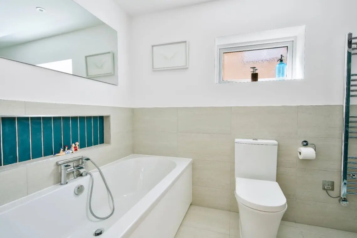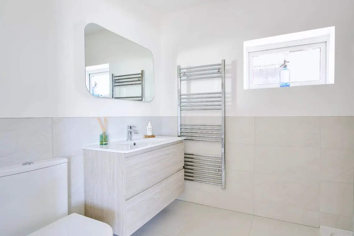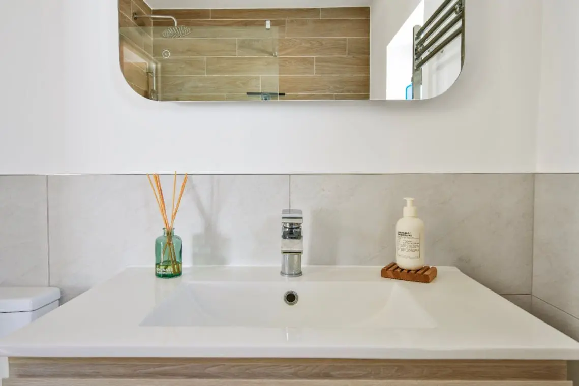 Family Bathroom – Bath with handheld shower over, large shower cubicle, basin, W/C and heated towel rail