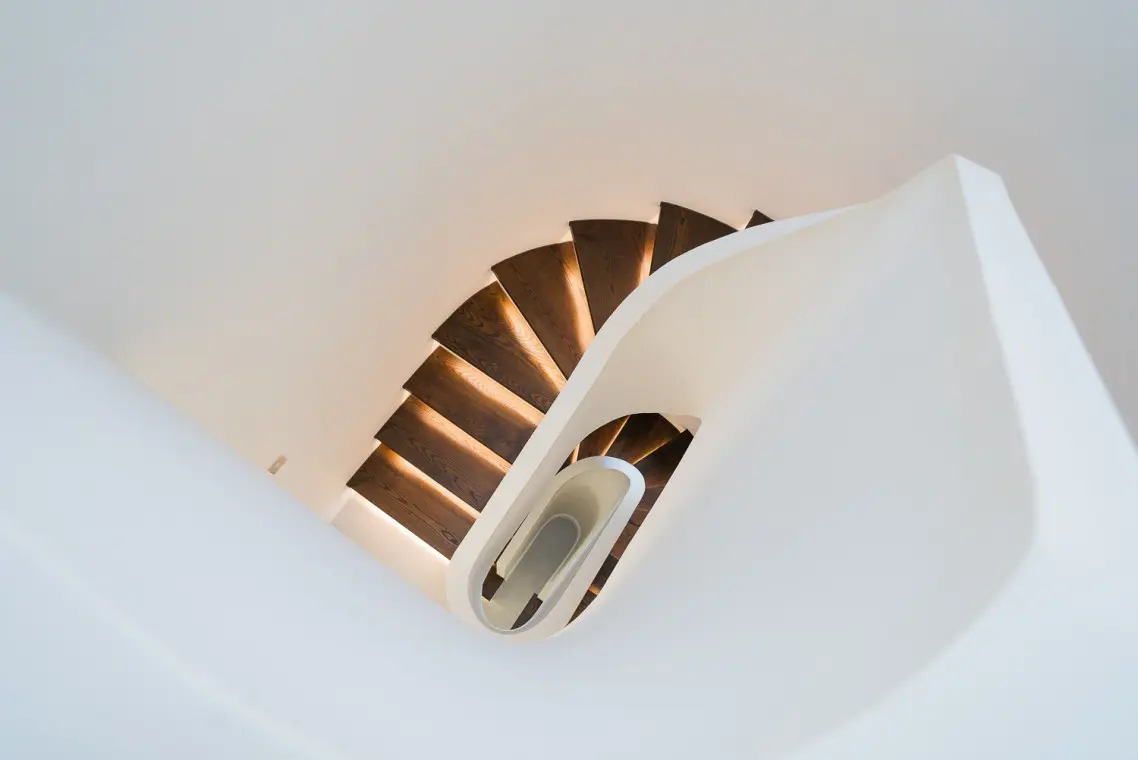Accommodating six guests in three beautifully decorated bedrooms, the property features stunning architectural highlights such as curved walls, feature lighting, and a beautiful bespoke staircase.