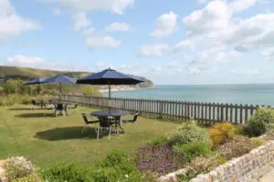 The hotel features a beautifully kept, cliff-top garden that is exclusively for guest use. Dotted with parasols and outdoor seating, it is a magnificent spot to enjoy an afternoon cream tea. Best of all, at the bottom of the garden, you will find a set of private steps that lead you directly down onto the soft, golden sands of Swanage Beach.