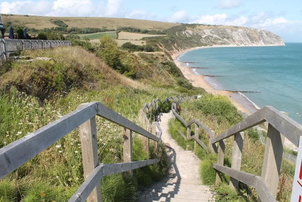 Swanage is a charming, traditional Victorian seaside town that feels a world away from the modern glitz of Sandbanks. Staying at The Pines puts you just a short, highly scenic 5-minute drive (or a bracing 20-minute coastal walk) from the town centre. Here, you can ride the historic Swanage Steam Railway, grab some traditional fish and chips on the pier, or browse the local fossil shops.
